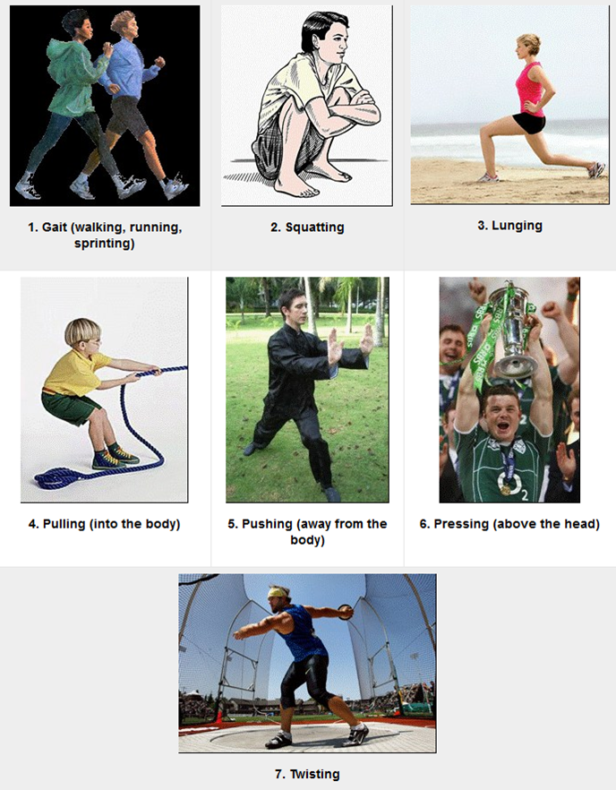 Because primary movement patterns are used in daily life and in sports, they are often the focus of conditioning in the gym as well. They are compound (use lots of joints and muscles), familiar to us, and necessary throughout life.